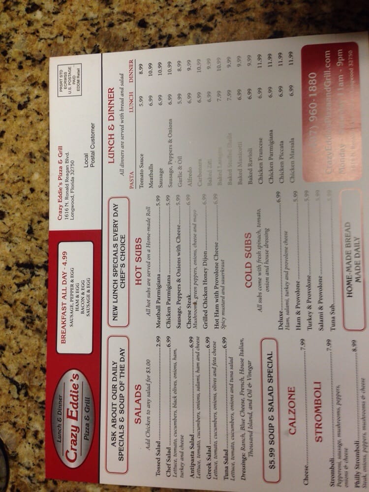 Crazy Eddie S Pizza Grill Posts Longwood Florida Menu