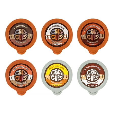 4 crazy cups decaf banana foster flambe flavored coffee 4 crazy cups decaf italian chocolate cheesecake flavored coffee 4 crazy cups decaf death by chocolate flavored coffee 4 crazy cups decaf chocolate coconut dream flavored coffee 4 crazy cups decaf frosted oatmeal cookie flavored coffee 4 crazy cups decaf pumpkin vanilla creme flavored coffee.