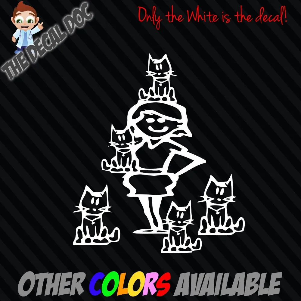 Details About Crazy Cat Man Cat Lady Stick Figure Family Car Vinyl